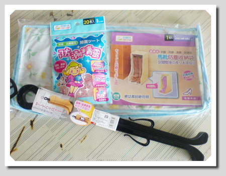 打開包裹,裡面不只有我那2件牛仔褲,還有一支馬靴收納夾、一包乾燥劑、一個立體長靴收納防塵袋