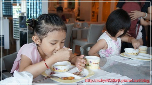 喬今天一到餐廳很意外的乖乖坐在餐椅上用餐